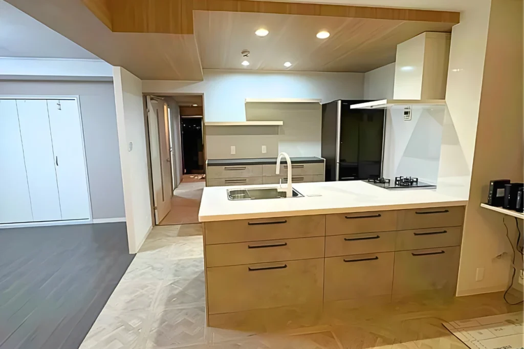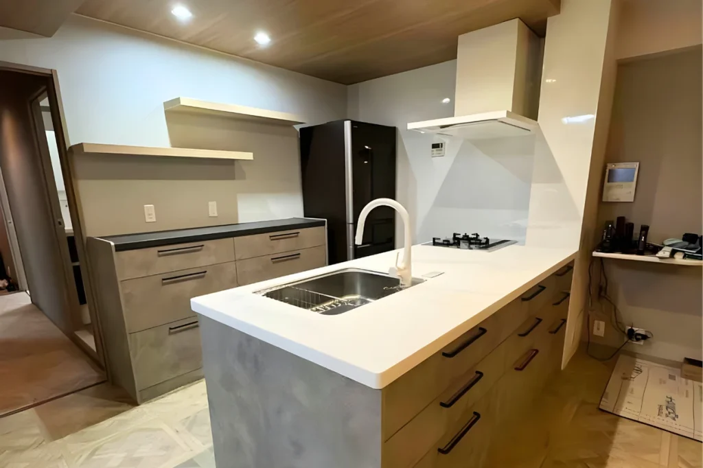 キッチンは“パイプスペースの内側にしかできない”と他社から言われていた中で、誠栄ホームが唯一「できます」と回答。経験と知識から導いた施工方法で、より広く使いやすいキッチンを実現しました。