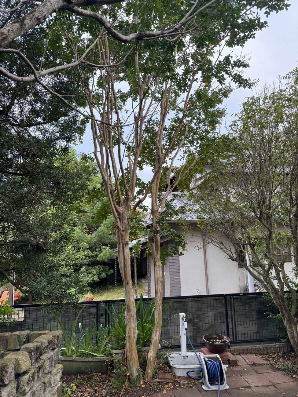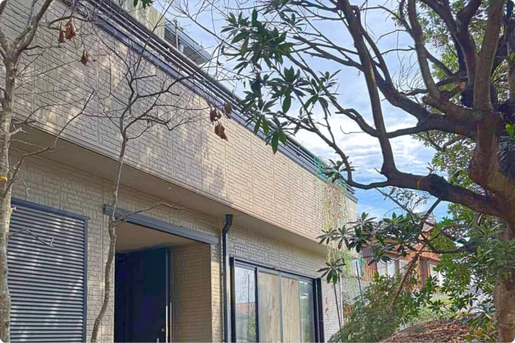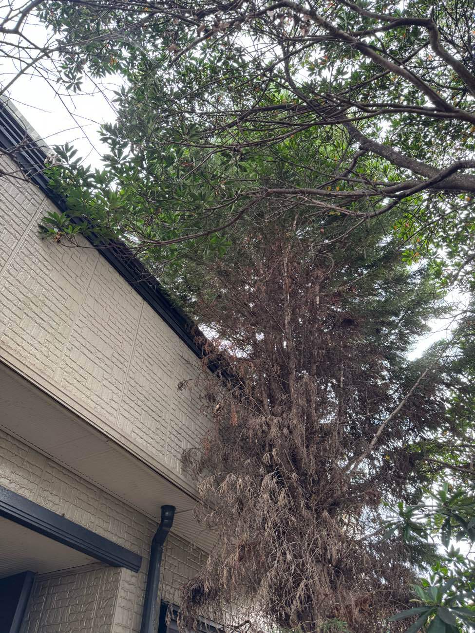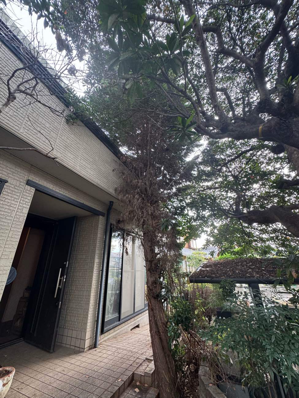 今回のお客様は、外壁にもたれかかるほど大きくなった庭木にお悩みでした。風が強い日には外壁への負担が気になり、日当たりが遮られることも心配です。